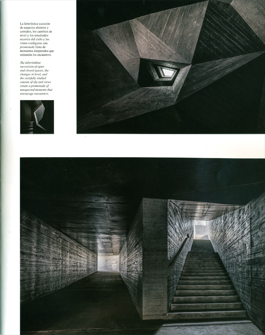 La laberíntica sucesión de espacios abiertos y cerrados, los cambios de nivel y los estudiados recortes del cielo y las vistas configuran una promenade llena de momentos inesperados que estimulan los encuentros.