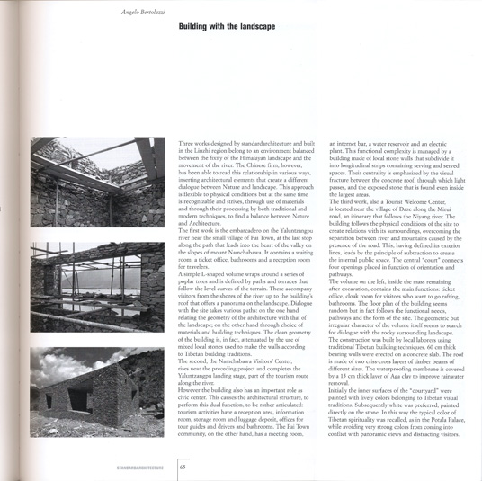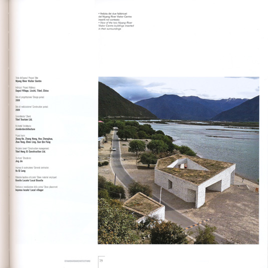 Three works designed by standardarchitecture and built in the Linzhi region belong to an environment balanced between the fixity of the Himalayan landscape and the movement of the river. The Chinese firm, however, has been able to read this relationship in various ways, inserting architectural elements that create a different dialogue between Nature and landscape. This approach is flexible to physical conditions but at the same time is recognizable and strives, through use of materials and through their processing by both traditional and modern techniques, to find a balance between Nature and Architecture.