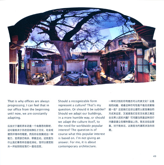 [Adaptation] It's an interesting metaphor for architects, probably depending if you actively changed or struggled with this cultural, social or building environment. Then you develop certain strengths and become more resilient, active. That is why offices are always progressing; I can feel that in our office from the beginning until now, we are constantly adapting.