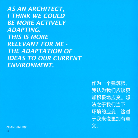 作为一个建筑师,我认为我们应该更加积极地应变。想法之于我们当下环境的应变,这对于我来说更加有意义。