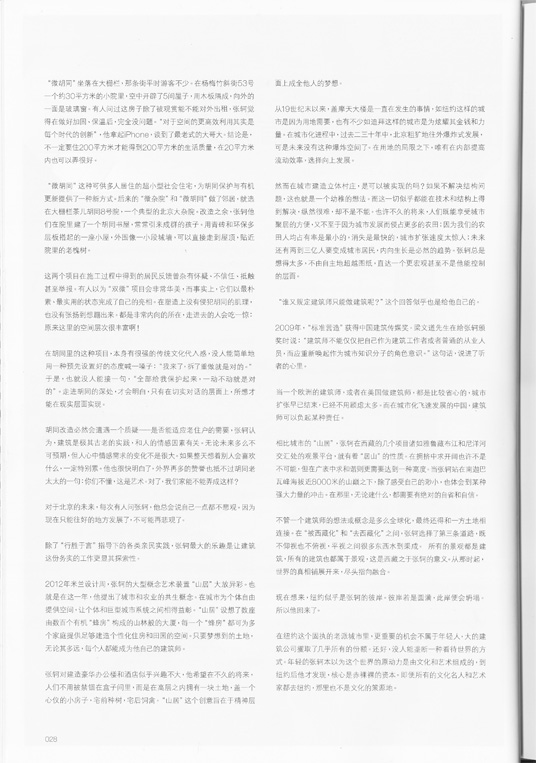 胡同改造必然会遭遇一个质疑一一是否能适应老住尸的需要,张轲认为,建筑是极其古老的实践,和人的情感因素有关。无论未来多么不可预期,但人心中情感需求的变化不是很大。如果整天想着别人会喜欢什么,一定特别累。他也很快明白了,外界再多的赞誉也抵不过胡同老太太的一句:你们不懂,这是艺术。对了,我们家能不能弄成这样?