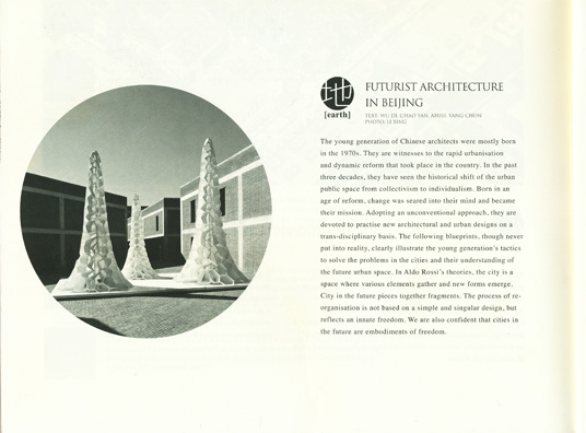 中国建筑师的年轻一代,他们中的大多数成长于改革的70年代,作为中国疾速城市化的浪潮和一个激烈时代的亲历者,在业已过去的三十余年中,他们目睹了城市公共空间从集体主义向个体情感的历史转变。生于一个革新的时代,改变,或此成为这一代人的使命,他们致力于用一种打破传统建筑学的思维方式进行跨领域合作的建筑与城市设计实践,即将引述的概念蓝图尽管并未成为现实,却清晰地呈现了年轻一代建筑学人关于中国当下城市问题的策略,还有对于中国未来都市主义的个人注解。如同阿尔多•罗西的类型学把城市看作元素集合的场所和新的形式产生的根本:未来的城市是一些曾破碎的片段重组的场所,事实上这种重组并不是寻求一种简单、统一的设计,而是来自其本身的生存自由,形式自由,我们也相信,未来的城市是自由的。