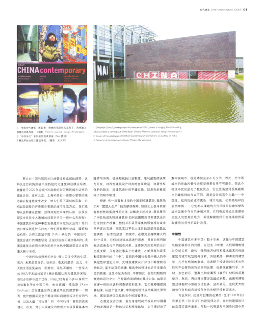 Abstract: The article is an observation of the exhibition “China contemporary” held in Rotterdam, June 10th until September 3rd 2006, from the perspective of a new generation of young Chinese architects. The author compares the background and intension of this exhibition with that of two other comprehensive exhibitions on China: the 1997 “Inside-Out” exhibition held in New York, and the 2005 “City Open Door” exhibition held in Shenzhen. While discussing the curatorial attitude, layout design and major concerns of the exhibition, the article also reflects on various critical questions raised by the exhibition curator Linda Vlassenrood on Chinese cities and architecture undergoing unprecedented transformation.