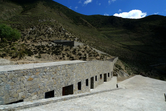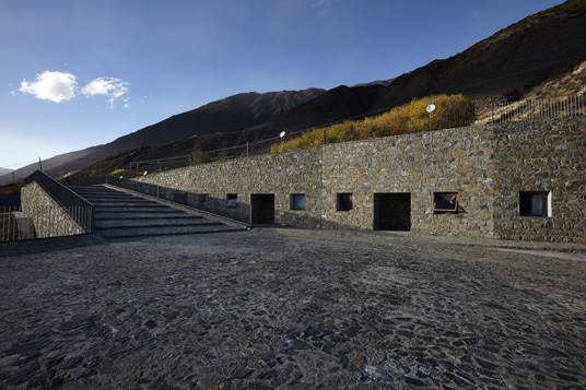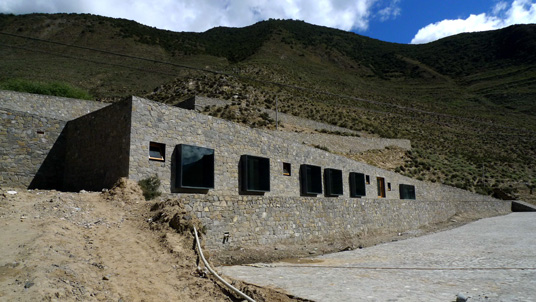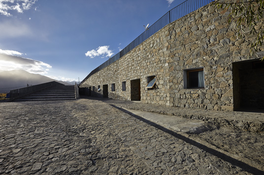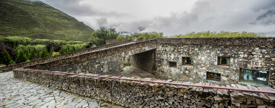 Like other projects in Tibet by ZAO/standardarchitecture, the regional character is not manifested through specific symbolisms, but through the unique relationship with mountains and rivers as well as the creative interpretation of local lumber. The main body of the terminal consists of a concrete frame, filled in by local masonry, stones gathered from near the site and patterned by local builders in their own technique. The railing is built from fire wood collected nearby, narrating, after exposure to weathers, a quiet and humble contemporaneity.