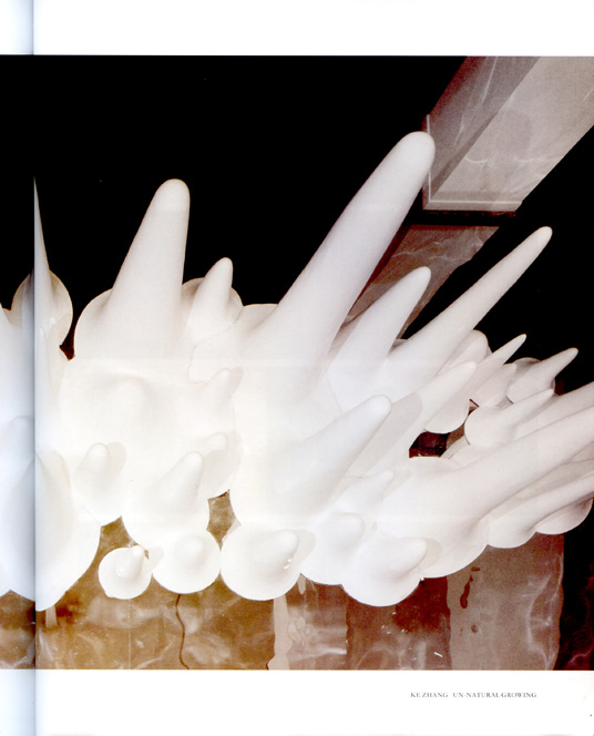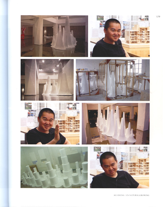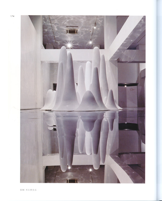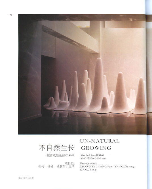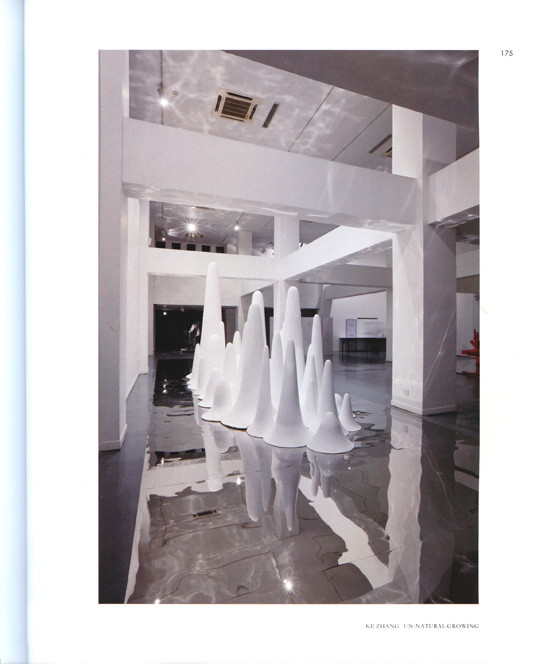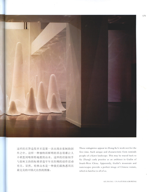 These stalagmites appear in Zhang Ke's work not for the first time. Such unique and characteristic form reminds people of a Karst landscape. This may be traced back to Ke Zhang's early practice as an architect in Guilin of South-West China. Apparently,Guilin's mountain and waterscapes provide a perfect image of Chinese nature, which is familiar to all of us.