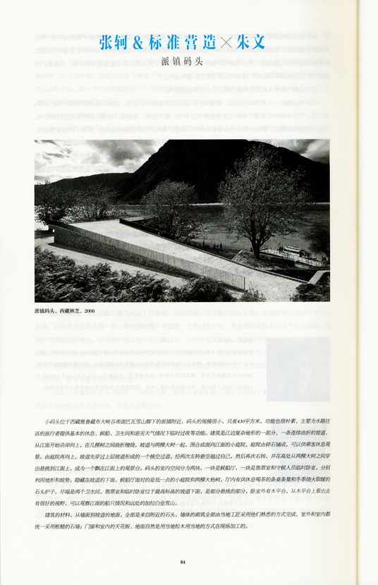 在三棵四五个人方可合抱的古树掩映下,派镇码头显得相当隐秘。石头的外墙使整个建筑与它所背靠的山崖融为一体,如果不是江边趸船的提示,你也许会忽略它的存在。从江面向上仰望,你会误以为树冠之中似乎有一眼石窟。只有当客船进浦时,随着汽笛的轰鸣,整个码头的轮廓才会突然显现出来。上岸以后,顺着错落有致的石子路上行,如同进入一个简朴的园林,整个建筑真正向你徐徐展开,右首是候船厅,左首是茶室,中间是通透的长廊对着色彩斑斓的山坡。不管是规模还是风格,都与所处的环境极不相称,有一种时空错位的感觉。它不像是一个蛮荒之地的小码头,而更像是一座避世独居的大别墅。
