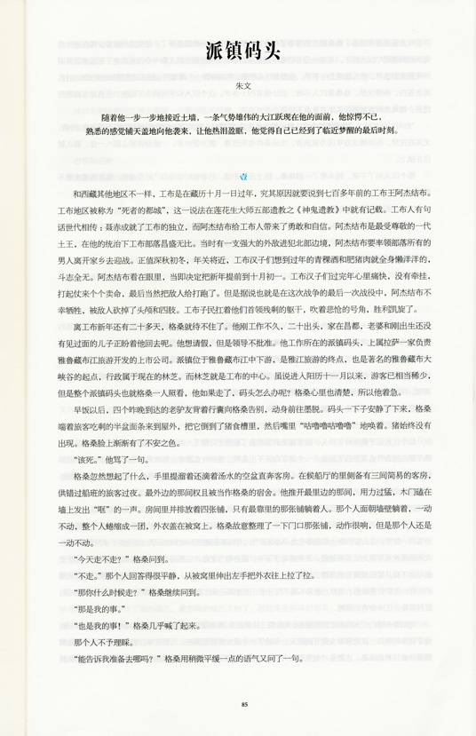 离工布新年还有二十多天,格桑就待不住了。他刚工作不久,二十出头,家在昌都,老婆和刚出生还没有见过面的儿子正盼着他回去呢。他想请假,但是领导不批准。他工作所在的派镇码头,上属拉萨一家负责雅鲁藏布江旅游开发的上市公司。派镇位于雅鲁藏布江中下游,是雅江旅游的终点,也是著名的雅鲁藏布大峡谷的起点,行政属于现在的林芝。而林芝就是工布的中心。虽说进入阳历十一月以来,游客已相当稀少,但是整个派镇码头也就格桑一人照看,他如果走了,码头怎么办呢?格桑心里也清楚,所以他着急。