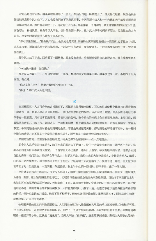 “你可以住在镇上。”格桑脱口而出。他说的也是实话,派镇码头离派镇还有相当一段距离,过于孤立、冷清,尤其在夜里。而派镇这些年因为搞旅游,生活条件有所改善,要方便许多。一般游客要么回八一住,要么就住在镇上。