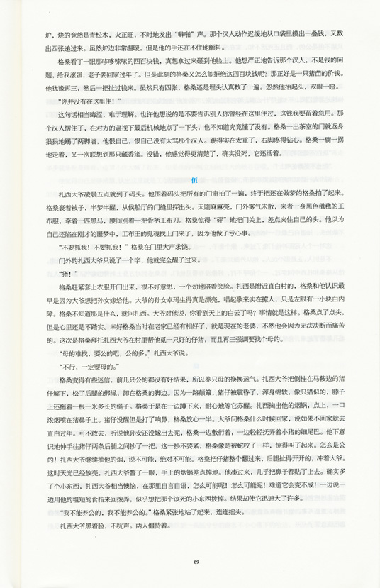 格桑看了一眼那哆哆嗦嗦的四百块钱,真想拿过来砸到他脸上。他想严正地告诉那个汉人,不是钱的问题,给我滚蛋,老子要回家过年了。但是此刻的格桑又怎么能拒绝这四百块钱呢?那正好是一只猪苗的价钱。他犹豫再三,然后一把扯过钱来。虽然只有四张,格桑还是埋头认真数了一遍。忽然他抬起头,双眼一瞪。