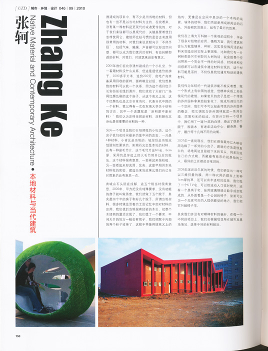 2009年深圳双年展的时候,我们研发出一种可以三锥折叠的膜。用一种农用的膜在上面种1cm厚的草,还可以有半透明的效果.我们做了一个KTV宅,可以给流动人口临时使用。还有一个是椅子宅,是用玻璃钢通过数字成型做成的,从外面看是一个公园的椅子,里面可以为一个无家可归的人提供睡觉的地方,我们把它叫做椅子宅。
