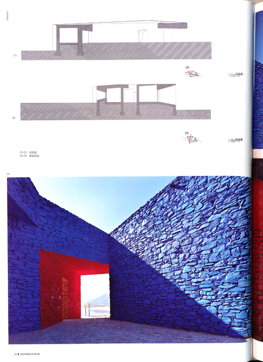 张轲:我们一直都想做一个传统结构的现代建筑。在西藏,可以用的、经济的本地材料很有限,本来就没什么选择性。用传统的材料就一定要造成传统的形式,或是现代合法的建筑就一定要用钢筋混凝土,我们希望有一个新的实验:用传统的——平时藏族老百姓盖房子用的材料、结构、技法,看我们能做出一个怎样区别子传统的房子?这个建筑实际上非常微妙,结构虽然是藏族传统的石砌方式 但是没有一个人怀疑这是一个现代的建筑,建筑的重量感与悬浮感同时存在,它在空间上的戏剧性还是很强烈的。如果你没有被强烈的色彩吸引,仔细看结构,就会注意到石头墙的切角是悬挑贴着石头墙的外皮切过去的,在这种结构下我们还有很多细节处理方式。