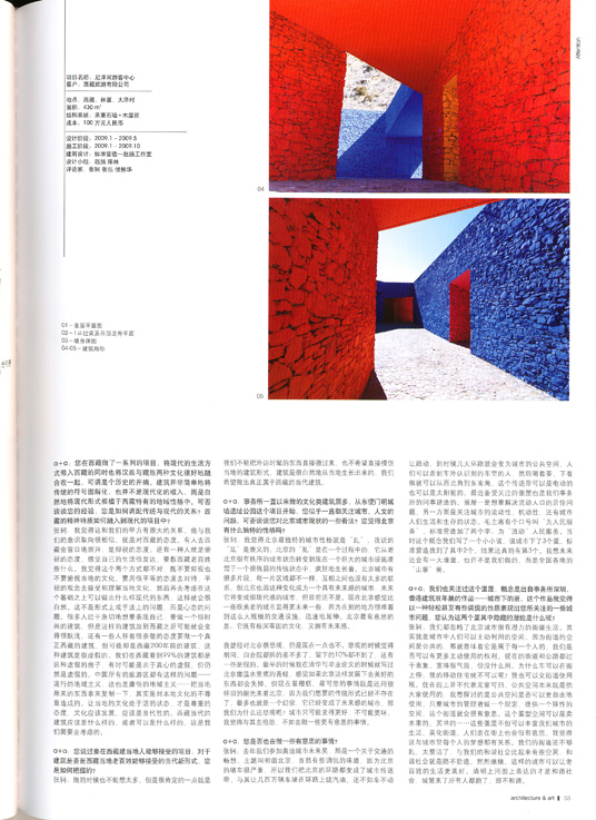 当然如果换一个角度看这个颜色:它只是一个艺术家在建筑师的作品上做的色彩装置,我觉得也可以接受,既然是艺术家的装置,也可以再换一个艺术家来做。关于这个颜色还是有很多争论,明年说不定就变成白色了。我还是希望它更抽象、更纯净一些,第一,我希望避免过于具象地代表本地的文化、传统的形式,第二,我们对于任何形式的模仿都希望避免。有一半人看了这个颜色后都联想起路易-巴拉甘,我们还是挺反感这个联想的,其实根本就没什么关系。不过这些颜色之所以有意思也在于它引起了一些争论,虽然在颜色的构成上很西藏,但是总体的视觉感还是很抽象的,也非常符合现代的视觉取向。