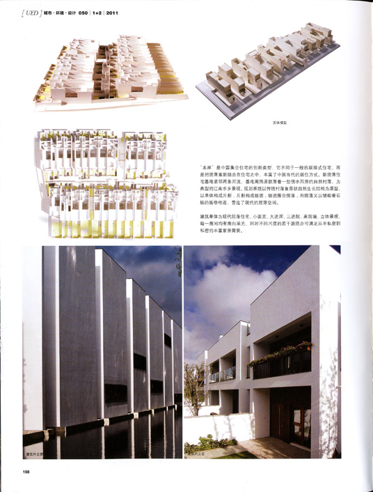 “本岸”是中国集合住宅的创新类型,它不同于一般的联排式住宅,而是把院落重新结合在住宅之中,丰富了中国当代的居住方式。新院落住宅基地紧邻两条河流,基地周围原散落着一些傍水而居的自然村落,为典型的江南水乡景观。规划系统以传统村落鱼骨状自然生长结构为原型,以单体构成片断;片断构成组团;组团围合院落;而院落又以铺砌着石板的街巷相连,营造了现代的院落空间。
