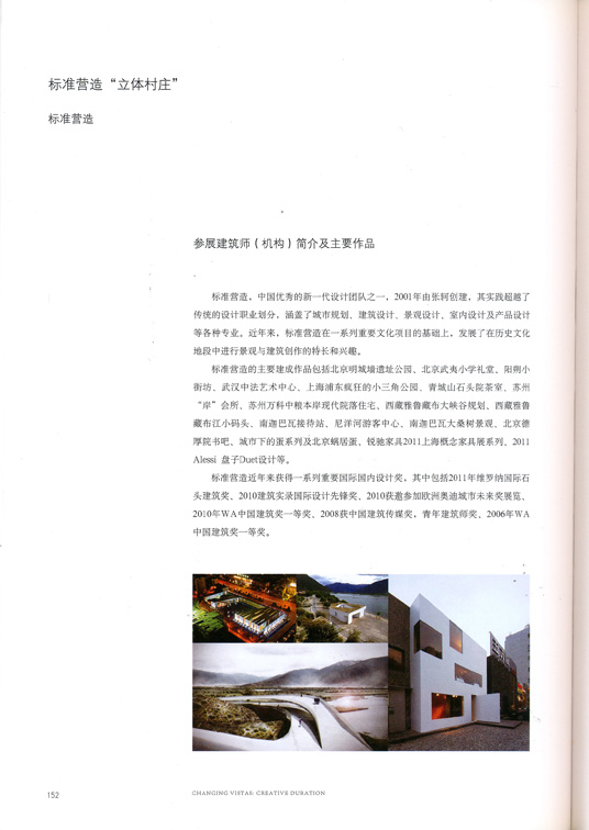 标准营造,中国优秀的新一代设计团队之一,2001年由张轲创建,其实践超越了传统的设计职业划分,涵盖了城市规划、建筑设计、景观设计、室内设计及产品设计等各种专业。近年来,标准营造在一系列重要文化项目的基础上,发展了在历史文化地段中进行景观与建筑创作的特长和兴趣。