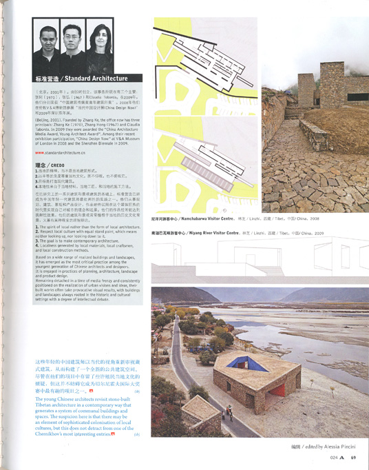 (北京,2001年)。由张轲创立,该事务所现在有三个主管:张轲(1970),张弘(1967)和Claudia Toborda。在2009年,他们分别荣获“中国建筑传媒奖青年建筑师奖”。2008年他们在伦敦V&A博物馆参展“当代中国设计展(China Design Now)”和2009年深圳双年展。