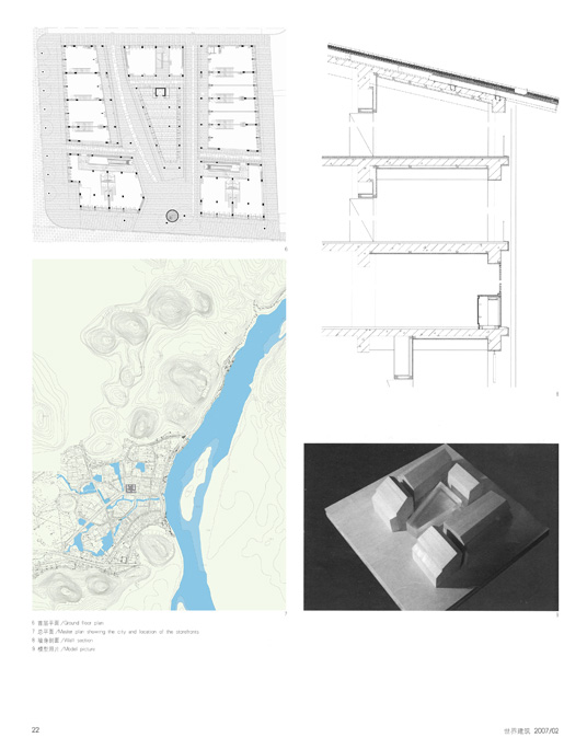 The small neighborhood is built on a block of 2300 sqm and is comprised of five small alleys and six separate buildings. The buildings occupy the entire boundary of the site, and the main alleys inside work as continuations of the neighboring urban fabric, We adopted a native way to have the main alleys point toward the major mountains nearby, namely the Lotus and the Dragon Head Mountain, As a result of this layout, all the six buildings become irregular in their plans. On the ground floor there are small shops and the shop owners live on these floors each have a bathroom and a kitchen. They could function either as apartments or as shops. Passing through the bridges linking each building, people will always find special views toward the surrounding Karst Mountains.