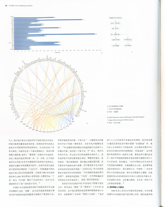 笔者对于建筑师张轲的“解码”基于其17 年来所经历的设计项目、出版物、展览、演讲与获奖等,通过新的角度与更加科学的数据分析的方法得到的分析结果,与专业学者对张轲感性的解读契合度相对较高。虽然个体建筑师或事务所的资料无法构成海量的、多维度且多形式的“大数据”(big data),但是随着人工智能领域突飞猛进的进步,期望未来能够实现构建“中国建筑师大数据”。与此同时,随着个体建筑师的数据资料不断地积累与更新,学者们对于中国建筑师的分析之视野也将不断扩展,亦或建立以代际划分的“ 中国建筑师代际大数据”,进而把握中国建筑发展的整体动态。