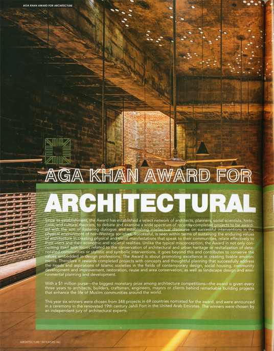 Establecido en 1977 y otorgado por el Aga Khan Trust for Culture (AKTC), que dirige el español Luis Monreal, el Premio Aga Khan de Arquitectura se ha ido consolidando a lo largo de los años hasta convertirse en una referencia no sólo de las arquitecturas del mundo islámico, sino también de los edificios de calidad realizados con recursos locales y atentos al contexto. Dirigido por Farrokh Derakhshani, el premio trienal, dotado con un millón de dólares, y cuyo jurado presidió en esta edición Luis Fernández-Galiano, ha recaído en seis obras de diferente condición y ubicaciones muy distintas, cuya característica común es el modo en que contribuyen a mejorar su entorno: la mezquita Bait Ur Rouf en Daca (Bangladés), de Marina Tabassum; el centro comunitario en Gaibandha, también en Bangladés, de URBANA / Kashed Mahboob Chowdhury (imagen superior); la biblioteca y el centro de arte infantil en un hutong pequinés, de ZAO/ standardarchitecture y Zhang Ke (véase Arquitectura Viva 180); el puente peatonal Tabiat en Teherán (Irán), de Diba Tensile Architecture / Leila Araghian y Alireza Behzadi; el Instituto Issam Fares en Beirut (Líbano), de Zaha Hadid Architects; y, flnalmente, el Parque Superkilen en Copenhague (Dinamarca) de BIG / Bjarke Ingels Group. Topotek 1 y Superflex (véase AV Monografjas 162), un singular proyecto que supone un elogio del pluralismo y de la tolerancia en el contexto de una Europa acosada de nuevo por el fantasma del nacionalismo y la xenofobia.