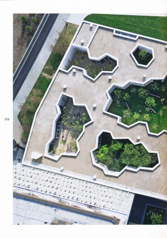 The office building is based on the space-forming concept of cellular structures. Three-dimensional cells fill the given outlines of the complete building volumetric, some even as voids. This space-generating concept projects itself onto the floor plans and the building’s envelope, with its tilted glass panes. Also, in the courtyard the organic grid system generates a system of cellular pockets of indoor and outdoor spaces.