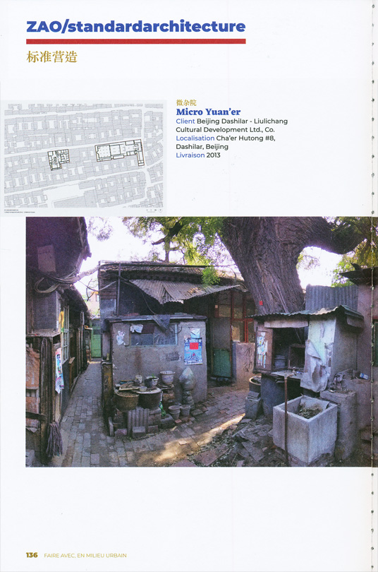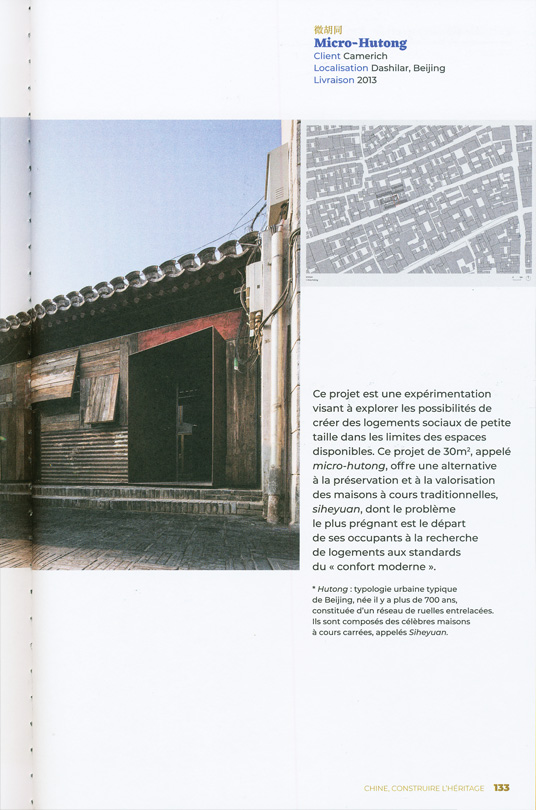 Ce projet est une experimentation visant à explorer les possibilités de créer des logements sociaux de petite taille dans les limites des espaces disponibles. Ce projet de 30㎡ , appelé micro-hutong, offre une alternative, à la préservation et à la valorisation des maisons à cours traditionnelles, siheyuan, dont le problème le plus prégnant est le depart de ses occupants à la recherché de logements aux standards du «confort moderne ».