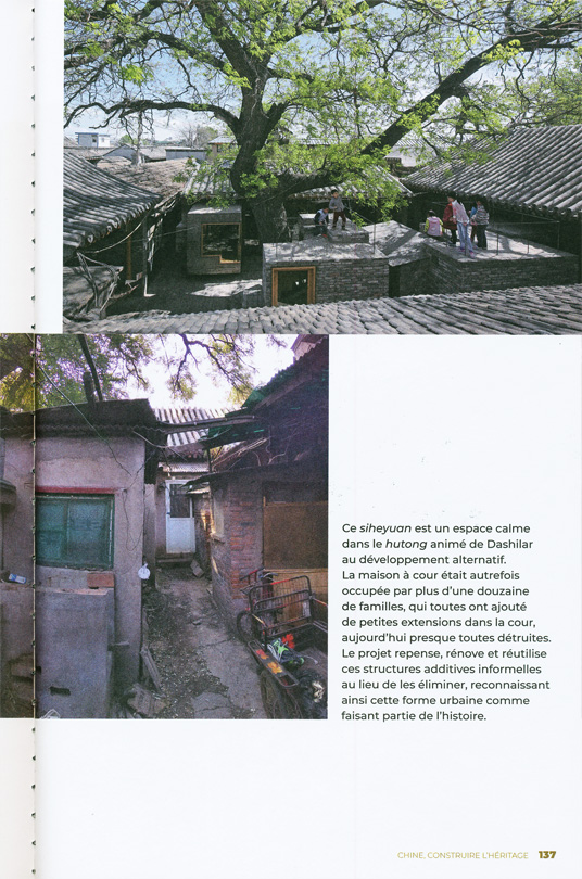 Ce siheyuan est un espace calme dans le hutong animé de Dashilar au développement alternatif. La maison à cour était autrefois occupée par plus d'une douzaine de familles, qui toutes ont ajouté de petites extensions dans la cour, aujourd'hui presque toutes détruites. Le projet repense, rénove et réutilise ces structures additives informelles au lieu de les éliminer, reconnaissant ainsi cette forme urbaine comme faisant partie de l'histoire.