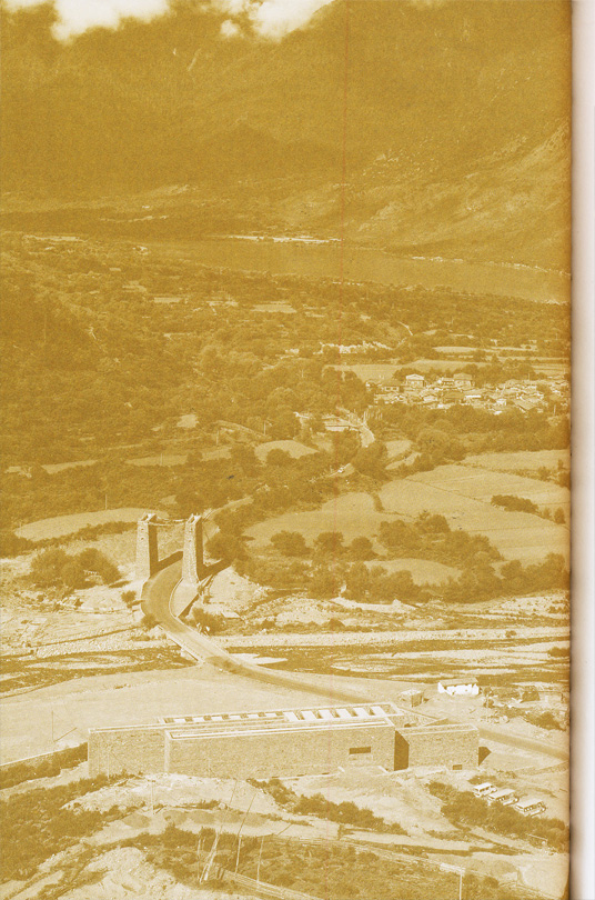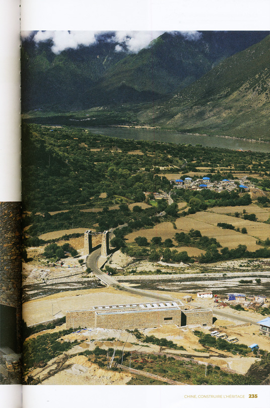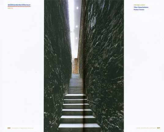 Le bâtiment se trouve dans un site prodigieux, le long de la route menant au dernier village Zhibai au fond du grand canyon de Yaluntzangpu, face au fleuve Yaluntzangpu et au sommet du mont Namchabawa qui culmine à 7782 mètres. Tout à la fois centre d'accueil pour les visiteurs et centre-bourg pour les villageois, il est également la base d'approvisionnement pour les randonneurs. Paysage abstrait dans le paysage naturel, le bâtiment est conçu comme une série de murs de pierre dans la pente.