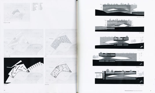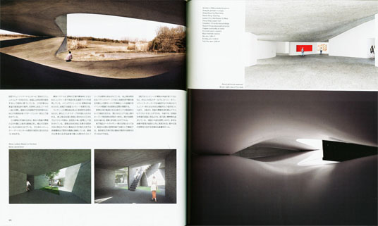 地下階はア一トギャラリ一用の空間となっており,構造体が展示空間を隔てる壁として機能する。彫刻的な天井の形は敷地の既存の地形をなぞったものである。
