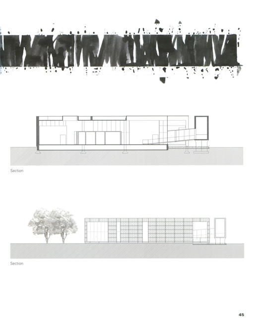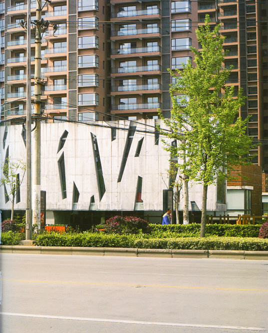 We were interested in testing the possibilities of designing something using ink-washing, one of the techniques employed by the Chinese intellectuals who used to reside in the area. So we did a very loose ink-wash drawing that we later scanned and literally transposed onto the facade of the building as a pattern of slits.