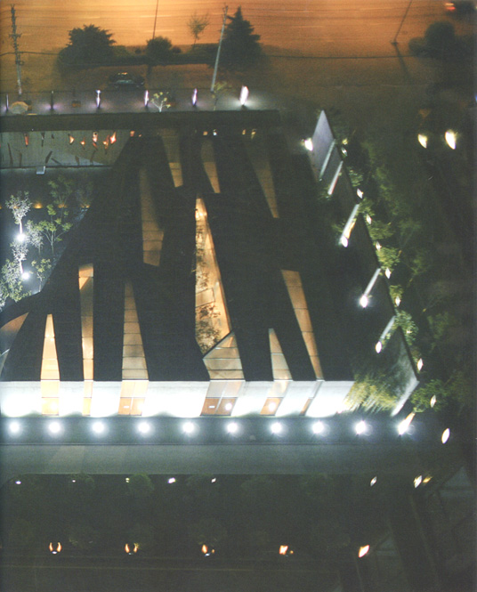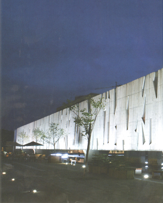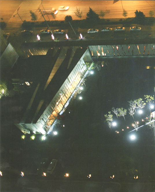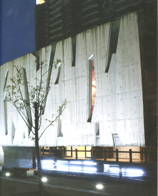 When we started to consult with the local planning bureau they told us there was a thirty-metre-wide storm trench on the site that couldn't be enclosed but could be built over. This gave us the idea of using the trench as a kind of water-garden that would dissect the site, and then floating a long enclosed bridge over it to connect the east and west halls. Because of the length of the bridge's span and the building's unusual slitted skin, there were considerable challenges in deciding how to arrange the steel structural members in side the concrete. The chief engineer told us it would take a computer six months to calculate how to optimally arrange the steel members, so we had to find another solution. We invited some engineering PhD students from the local university to take up the challenge.They solved the problem empirically using a scale model, and we successfully achieved a 32-metre span at the centre. Just after the construction work was completed Wuhan was struck by an earthquake, but the building was unscathed.
