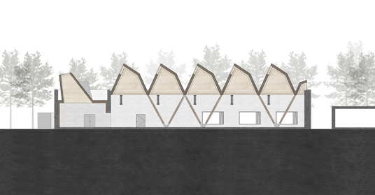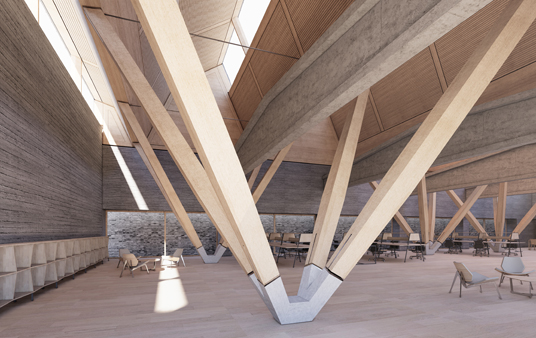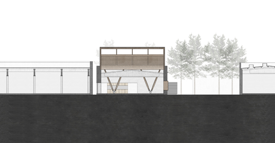 material: wood (laminated timber), existing structure prefabricated concrete with brick
