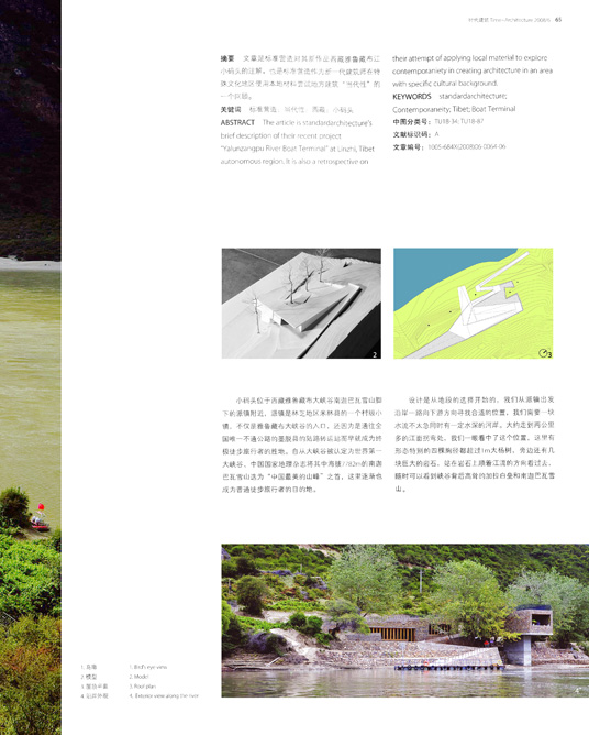 ABSTRACT The article is standardarchitecture's brief description of their recent project "Yalunzangpu River Boat Terminal" at Linzhi, Tibet autonomous region. It is also a retrospective on their attempt of applying local material to explore contemporaniety in creating architecture in an area with specific cultural background.