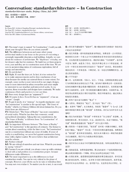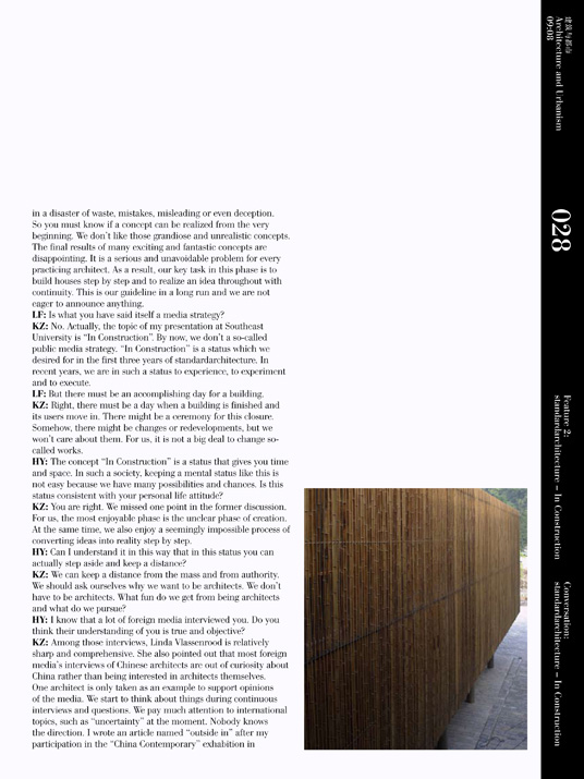 KZ: No. Actually, the topic, of my presentation at Southeast University is "In Construction". By now, we don't a so-called public media strategy. "In Construction" is a status which we desired for in the first three years of standardarchitecture. In recent years, we are in such a status to experience, to experiment and to execute.