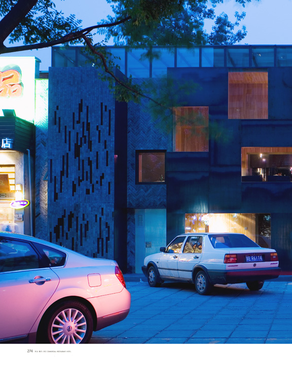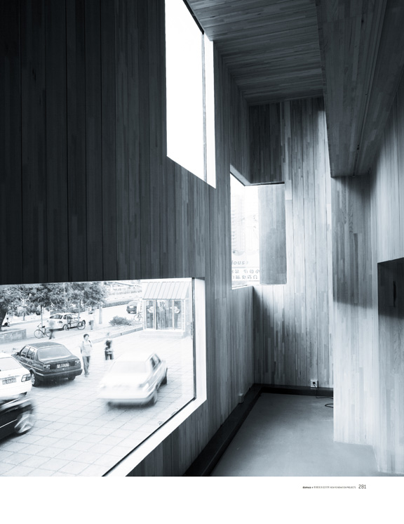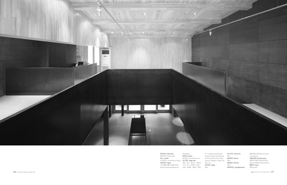 Coinciding with the interior, the façade of the shops is designed as two separate shops. One is the gallery and the other the bookstore, coffee shop and restaurant. The gallery façade is a pure masonry volume built out of local grey brick, with the door also built of bricks. The book and coffee shop façade is constructed by a layer of 6mm thick steel panels,and random textures of the steel panels were carefully preserved.