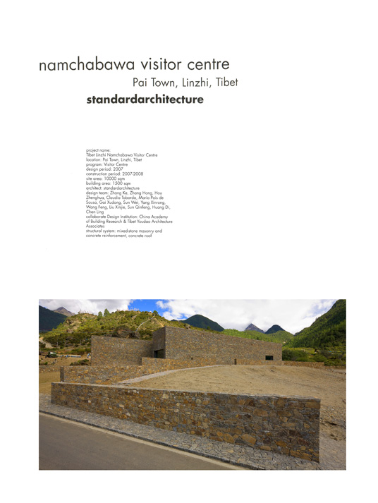 Il visitor center Namchabawa è il secondo edificio disegnato da standardarchitecture in Tibet dopo il progetto per l'approdo nautico Yaluntzangpu del 2008. Il centro sorge in un piccolo villaggio chiamato Pai Town nella zona di Linzhi, nell'area sud-orientale del Tibet. L'edificio sorge su un declivio lungo la strada che conduce all'ultimo villaggio Zhibai insinuato nel gran canyon di Yaluntzangpu, di fronte al fiume omonimo e con alle spalle i 7782 metri del monte Namchabawa.