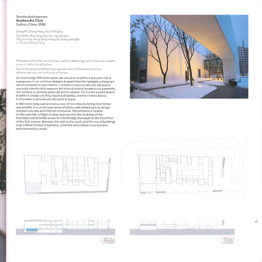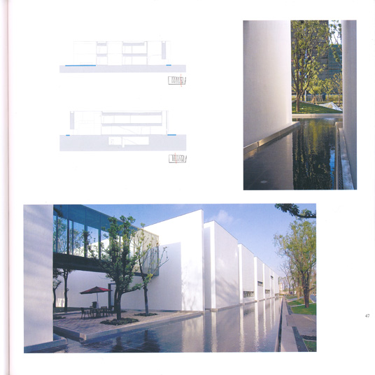 Ogni apertura tra un edificio e l'altro ha forma e profondità differenti, spazi introversi con funzioni variate (interni, cortili e atrii) sono attraversati e collegati da ponti su piccoli specchi d'acqua che percorrono l'intero edificio e reinterpretano la tradizione di Suzhou, citta celebre per i canali e i ponti in pietra.