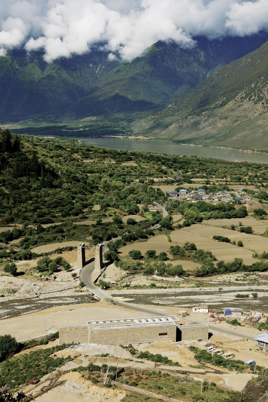 2007年6月,我们几个人带着所有这些的问题,辗转来到了西藏林芝地区雅鲁藏布大峡谷中的南迦巴瓦雪山脚下,开始了雅鲁藏布江沿线从林芝机场到雪山脚下的“直白村”约80公里公路、水路交通设施的规划设计踏勘工作。并没有详细任务书,也没有建筑选址,只知道要为雅鲁藏布大峡谷和南迦巴瓦雪山景区建造一个游客接待站。在精疲力竭地走了三天的江边徒步转经线之后,终于在地图上确定了接待站的详细位置。
