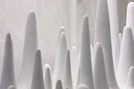 It is part of an exhibition named as “Un-Natural” sponsored by Formica. The work is a result out of a series of experimental ideas, which sometimes appear in our architectural practice, and some of them have become the key word of our projects, whereas others still remains in our minds. These ideas are loosely connected, and we have been unable to give clear answers to these ideas yet, so what we can say is that these ideas relate to architecture and city, artificial and natural, agriculture and landscape, environment and lifestyle and other problems we must confront in our daily work and life. This exhibit tries to keep openness to all questions instead of pointing to a specific thought, which is the start of our experimental mind. Meanwhile, it is not limited to a certain scale, it can be as small as a decoration on the table or as large as a city. The span of scale corresponds to the multilevel nature of the problem.