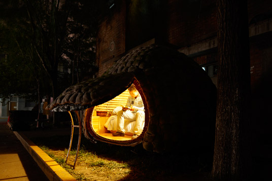 In the year 2009, while cities suffocate on their last breath, three eggs were laid in a street by Beijing. Two were discovered by standardarchitecture, which immediately grasped their potential as a new life form. Thus, the eggs were shipped to Shenzen to allow users of the biennale explore interaction with these new urban species, whose learning’s can hatch hope for the future and consequently save our cities.