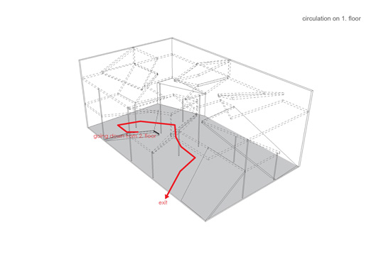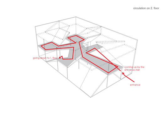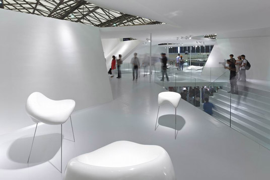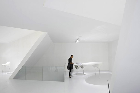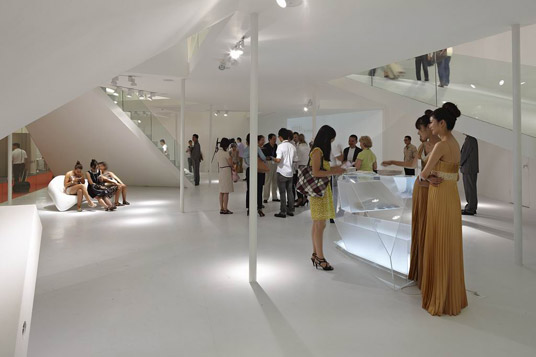 The concept for the showroom is a vision of the house of the future, which upholds values of 2020 such as lightness, transparency, spatial multiplicity, openness and continuity