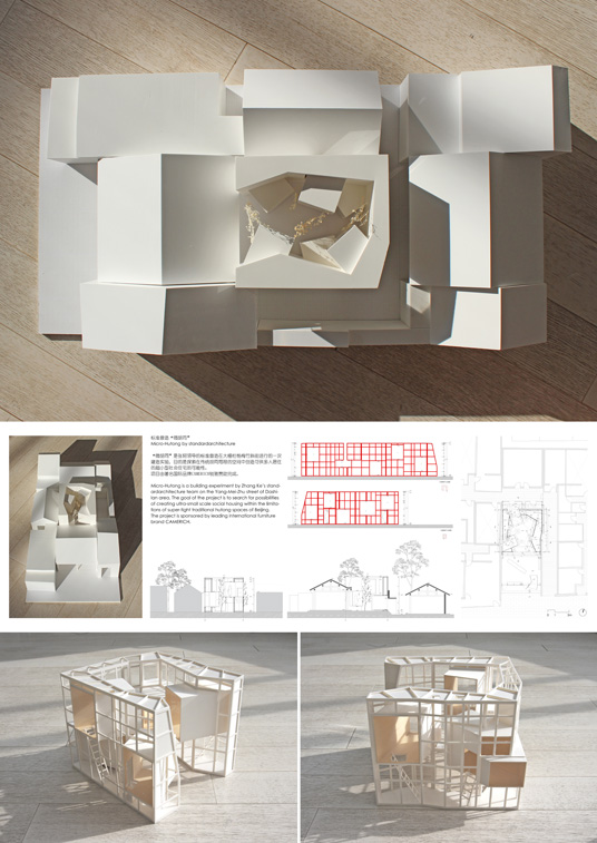 “微胡同”是张轲领导的标准营造在大栅栏杨梅竹斜街进行的一次建造实验,目的是探索在传统胡同局限的空间中创造可供多人居住的超小型社会住宅的可能性。项目由著名国际品牌CAMERICH锐驰赞助完成。