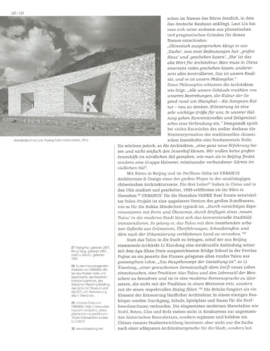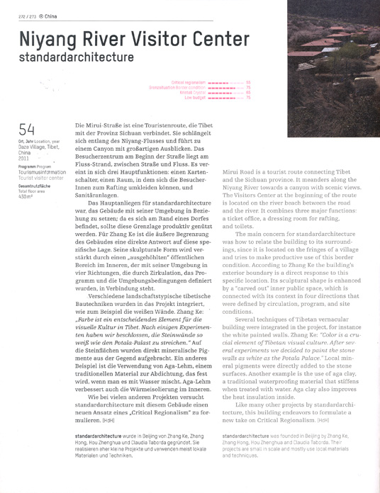 standardarchitecture wurde in Beijing von Zhang Ke, Zhang Hong, Hou Zhenghua und Claudia Taborda gegründet. Sie realisieren eher kleine Projekte und verwenden meist lokale Materialen und Techniken.