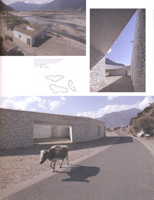 Several techniques of Tibetan vernacular building were integrated in the project, for instance the white painted walls. Zhang Ke: "Color is ct crucial element of Tibetan visual culture. After several experiments we decided to paint the stone walls as white as the Potala Palace." Local mineral pigments were directly added to the stone surfaces. Another example is the use of aga clay, a traditional waterproofing material that stiffens when treated with water. Aga clay also improves the heat insulation inside.